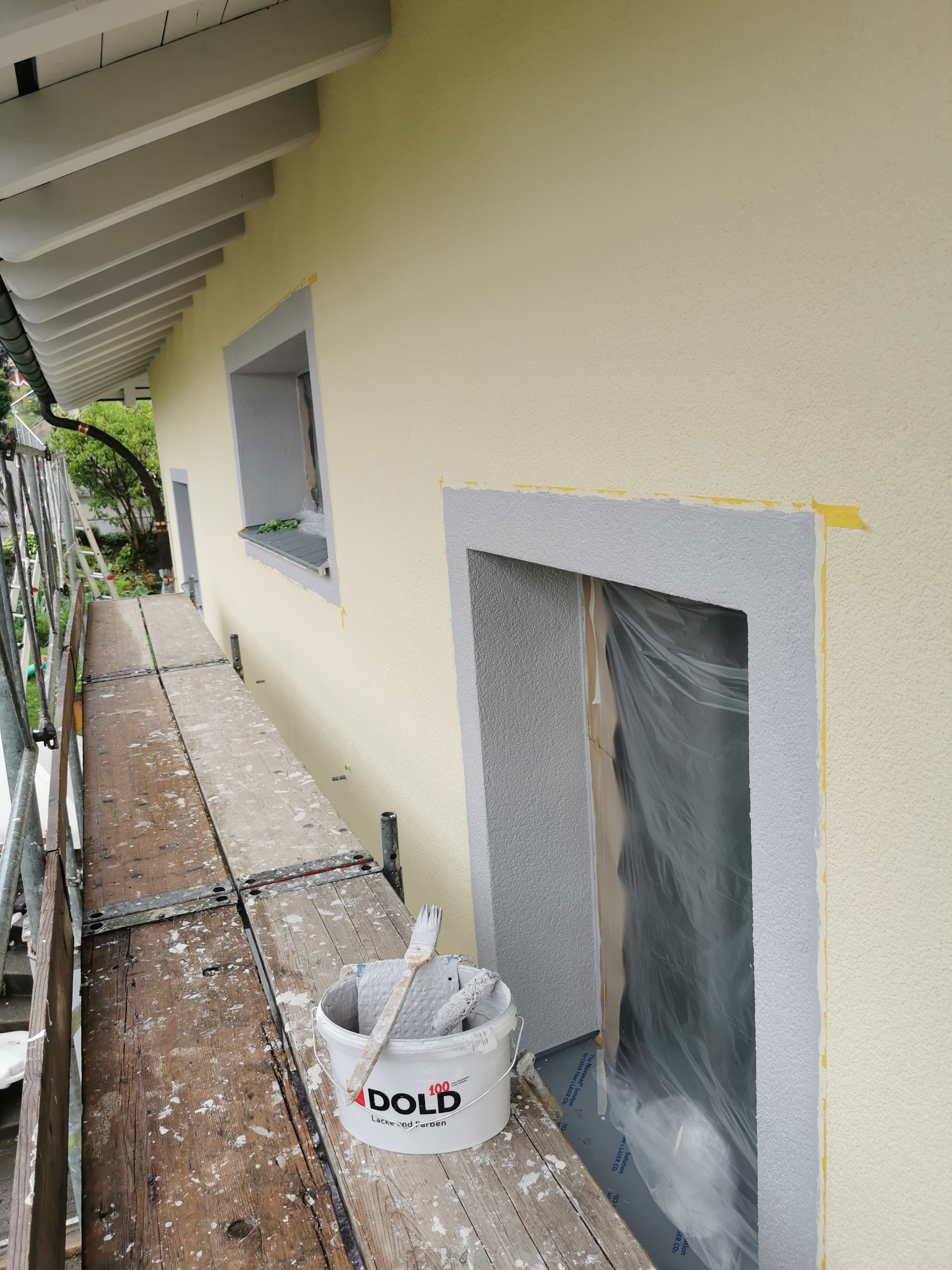 Fassadenrenovation mit Umrahmung der Fenster